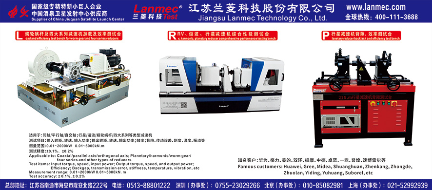 Jiangsu Lanmec Technology Co., Ltd.江蘇蘭菱科技股份有限公司成立于2002年,國家級高新技術企業、江蘇省扭矩傳感器研發中心、江蘇省企業研究生工作站。 公司主要產品: 轉矩轉速傳感器(扭矩傳感器):范圍0.01-2000KN.m,可以定制防爆、非標等;各類動力測試設備:電機測試臺、減速機測試臺、電動機測試臺、執行器測試臺、蝸輪箱測試臺、閥門扭矩測試臺、鉆機測試臺、液壓馬達測試臺等;各類模擬負載磁粉制動器、磁滯制動器、電渦流制動器、電力測功機等;測試儀表及軟件的研發與生產。 蘭菱科技通過了ISO9001、ISO14000、ISO45001體系認證,歐盟CE認證,擁有自營進出口權,強大的研發能力、全產業鏈的制造能力、及時售后的保障能力。